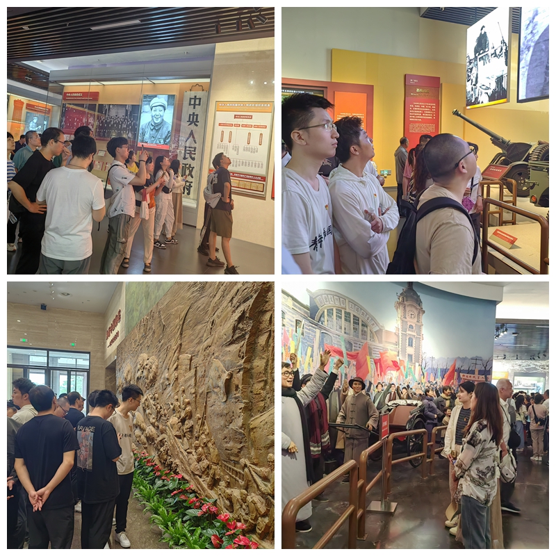 随后,师生深入“进京赶考”“进驻香山”“继续指挥解放全中国”“新中国筹建”“不忘初心 牢记使命 永远奋斗”五个展区,置身于高度还原的历史场景,重温风云激荡的红色岁月,回顾中国共产党领导中国人民夺取全国胜利和党中央筹建中华人民共和国的光辉历史,见证了中国共产党人团结各界人士凝心聚力描绘新中国宏伟蓝图的艰辛和荣耀,深切感受到了老一辈革命家指点江山、挥斥方遒的壮志豪情和不骄不躁、艰苦奋斗、为人民利益不怕牺牲的伟大革命精神,受到了深刻的思想政治洗礼。